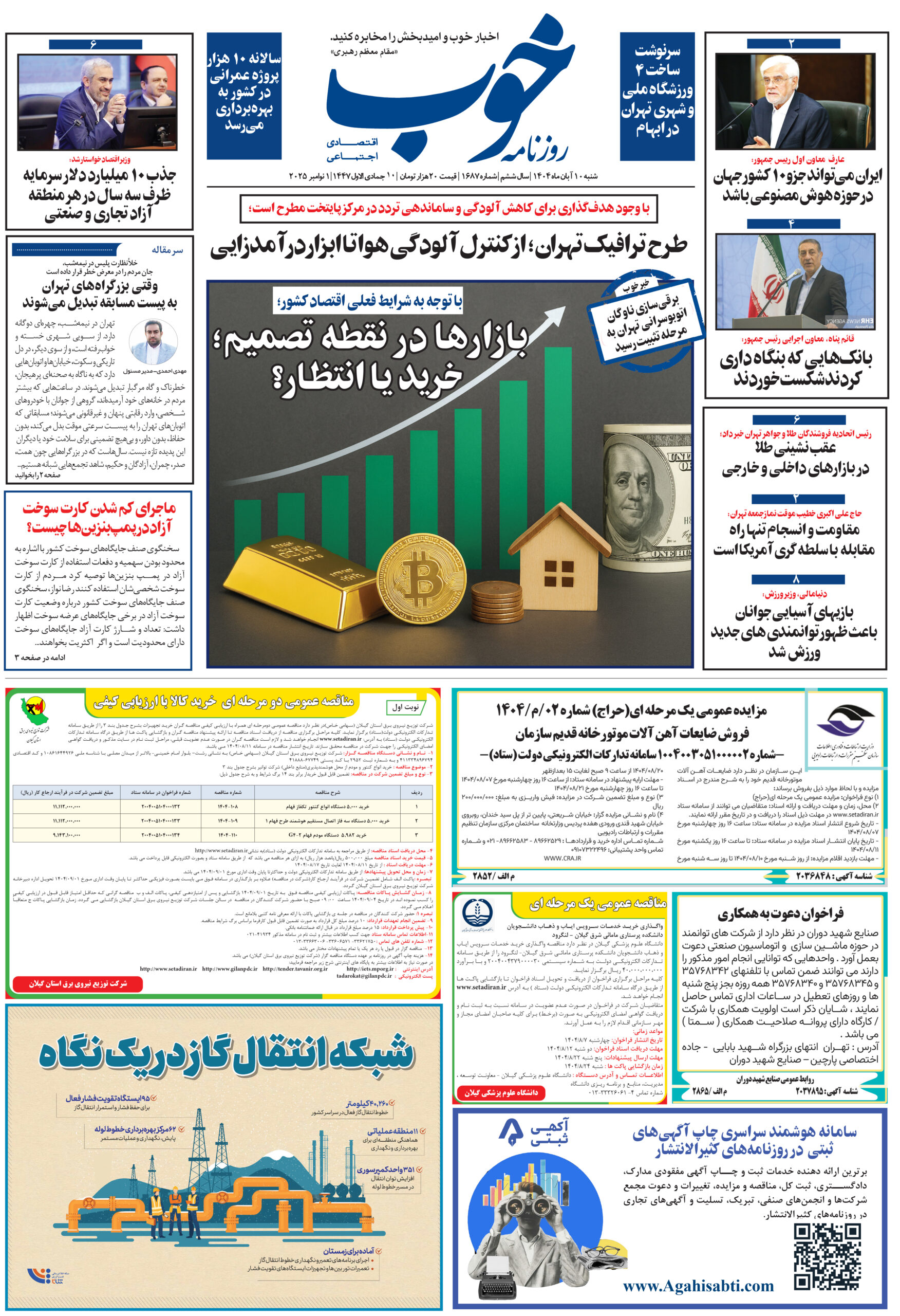 روزنامه «خوب» شنبه 10 آبانماه ۱۴۰۴