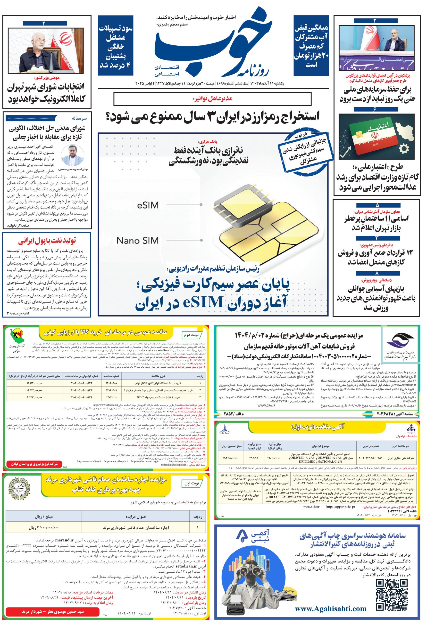 روزنامه «خوب» یکشنبه 11 آبانماه ۱۴۰۴