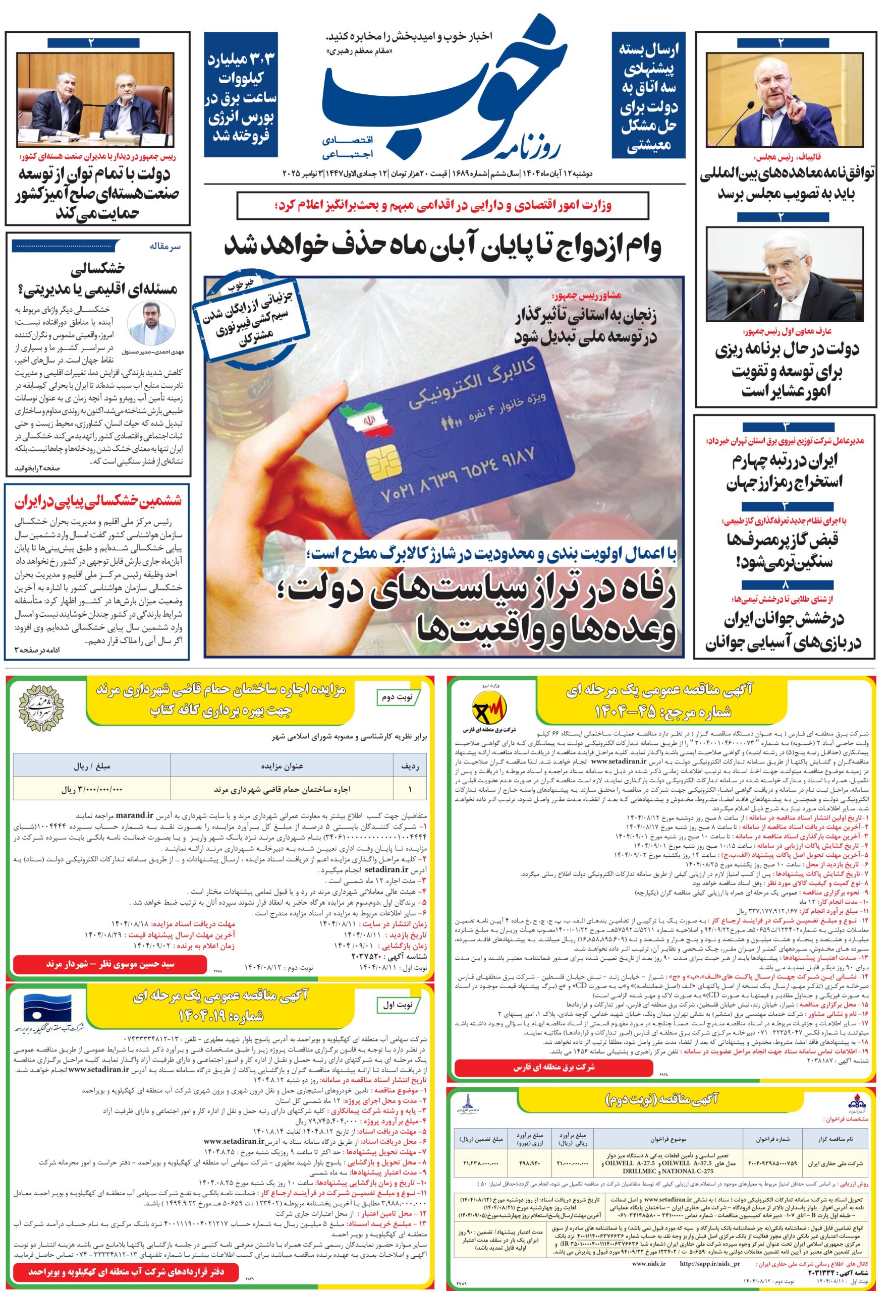 روزنامه «خوب» دوشنبه 12 آبانماه ۱۴۰۴