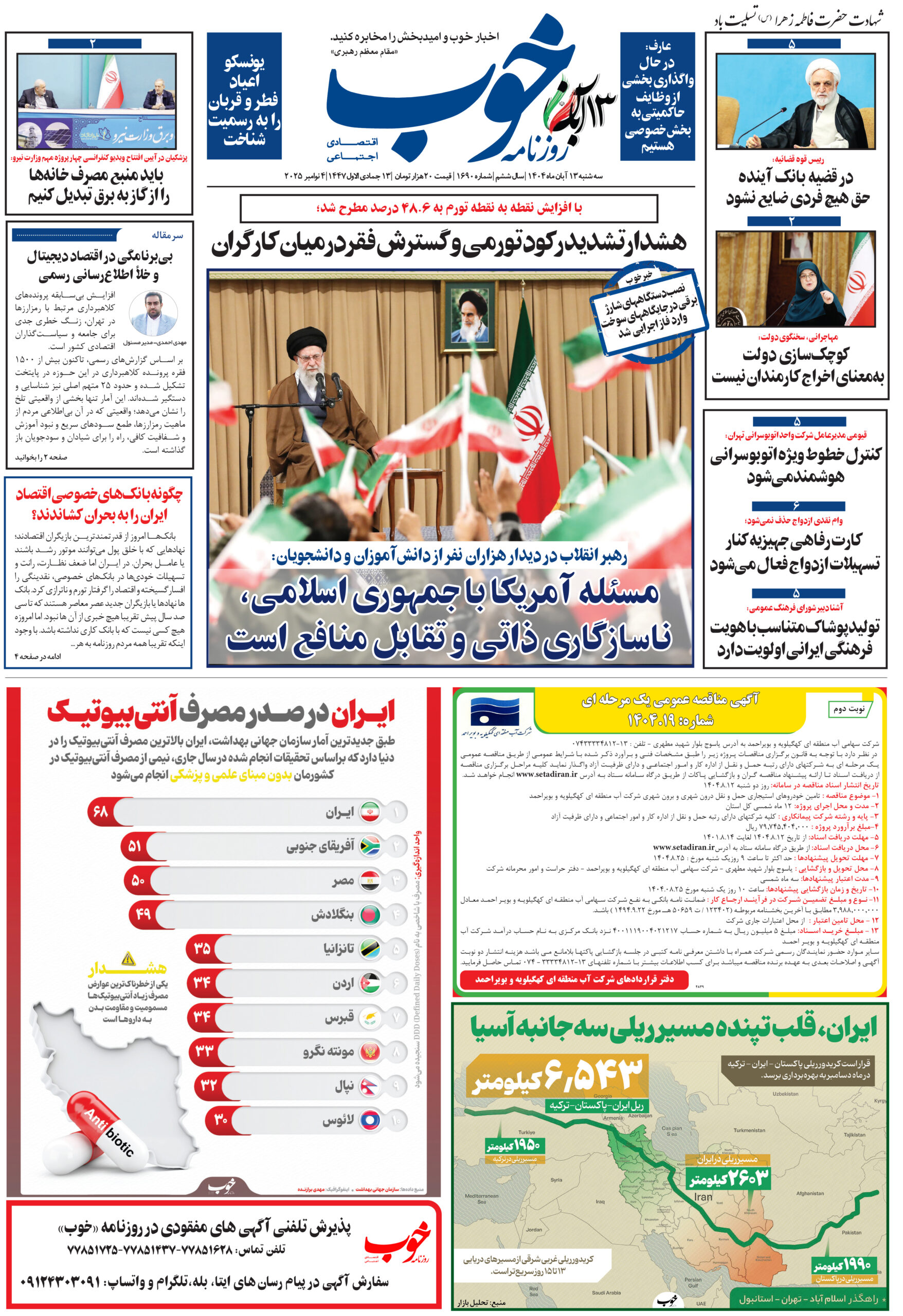 روزنامه «خوب» سهشنبه 13 آبانماه ۱۴۰۴