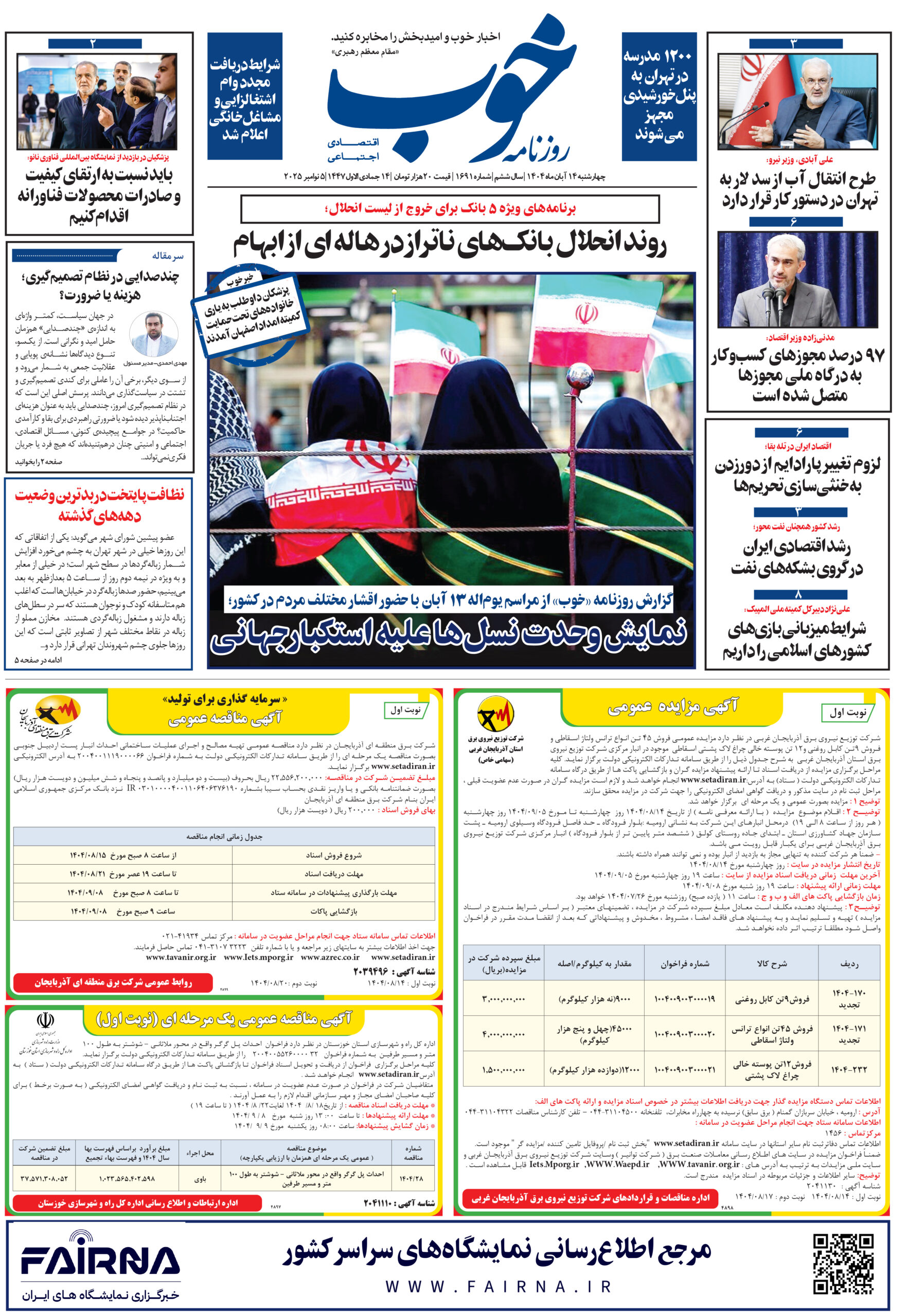 روزنامه «خوب» چهارشنبه 14 آبانماه ۱۴۰۴