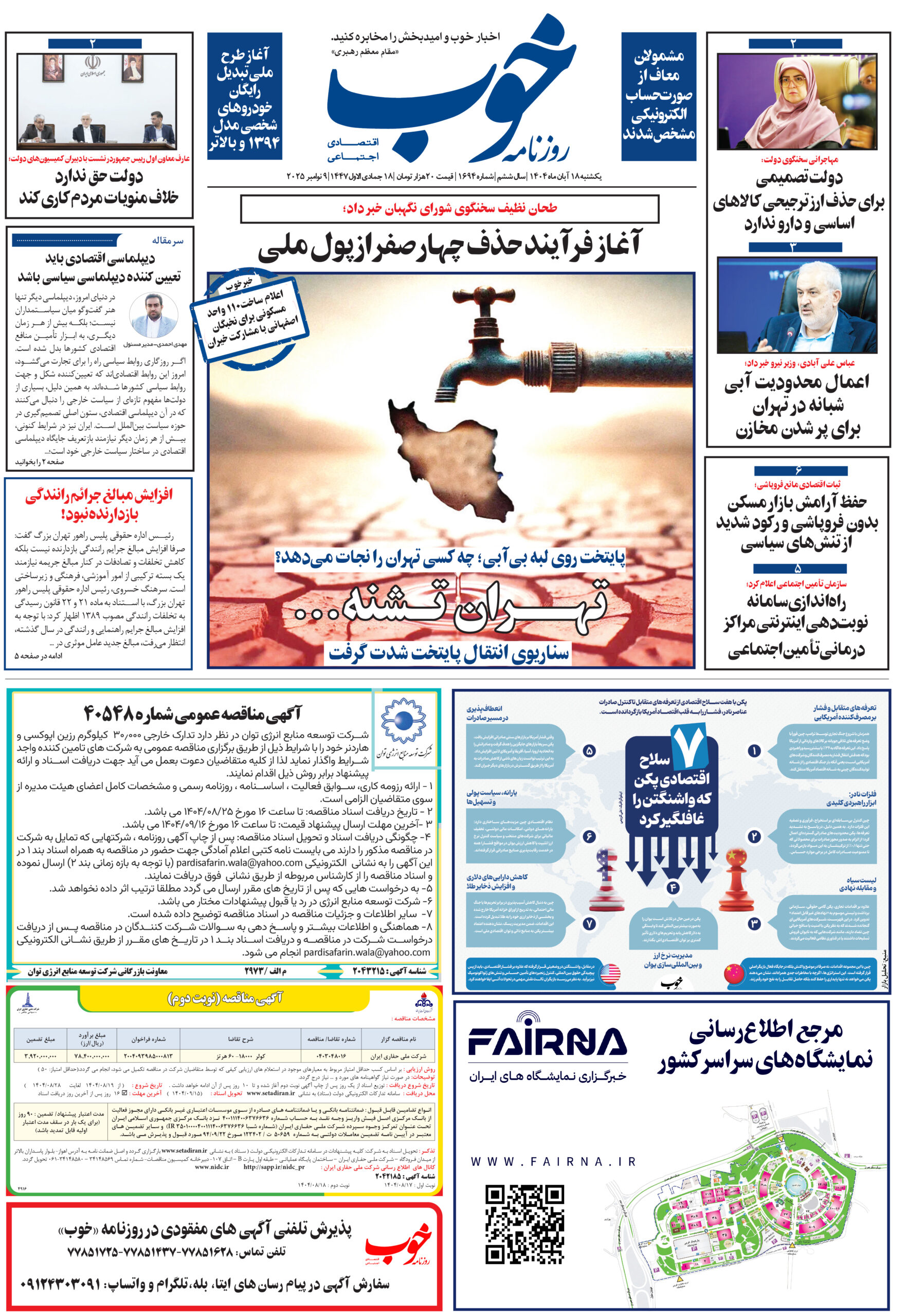 روزنامه «خوب» یکشنبه 18 آبانماه ۱۴۰۴