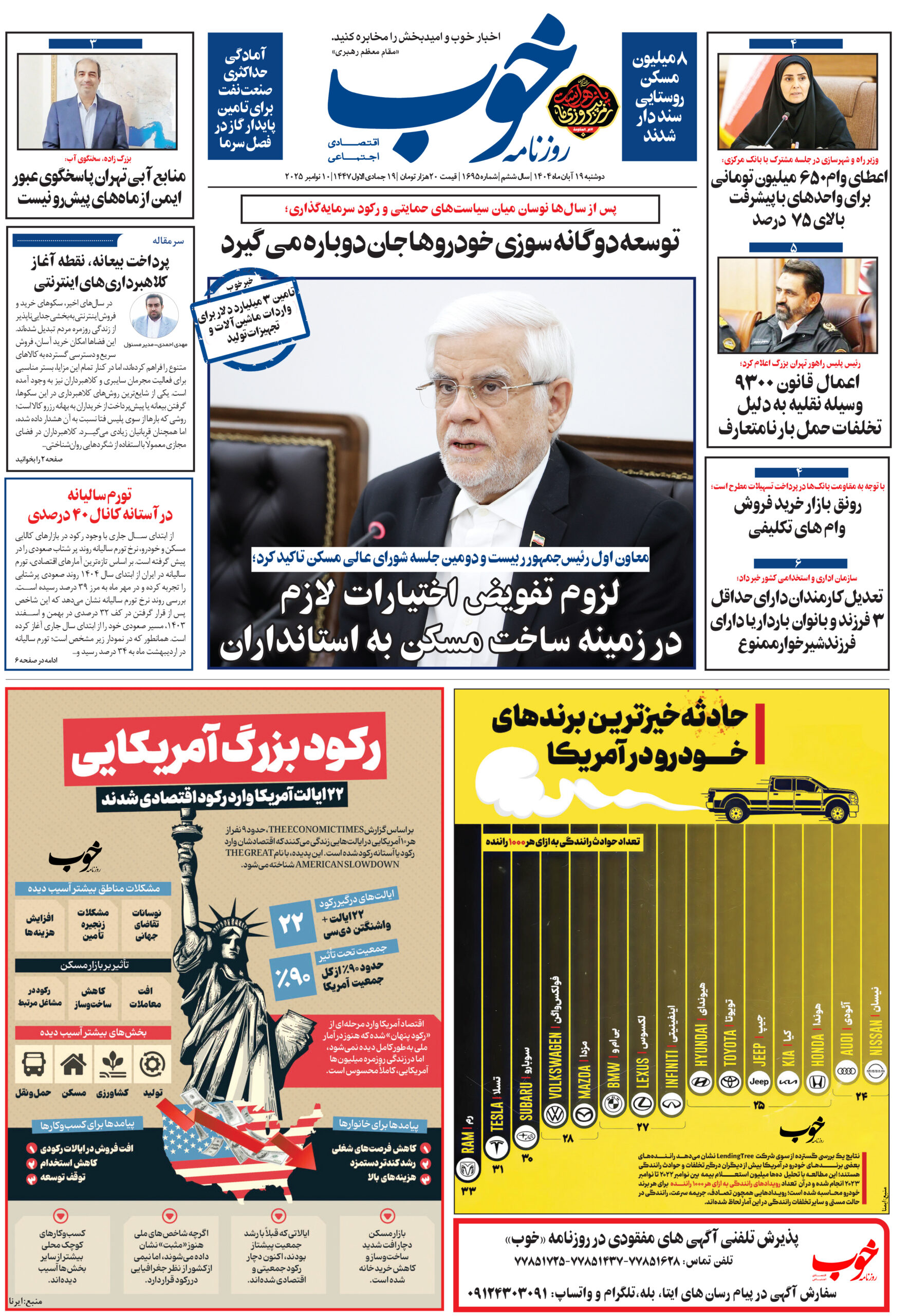 روزنامه «خوب» دوشنبه 19 آبانماه ۱۴۰۴