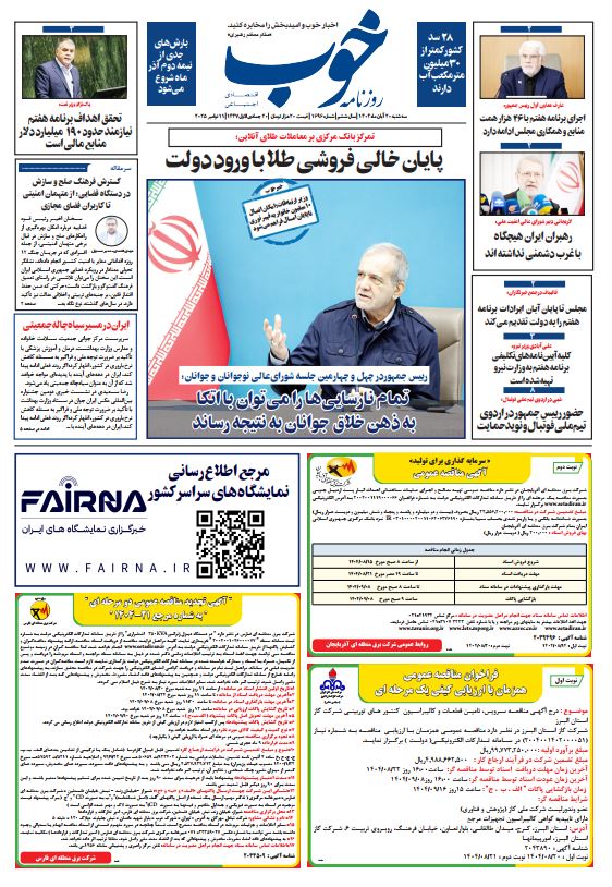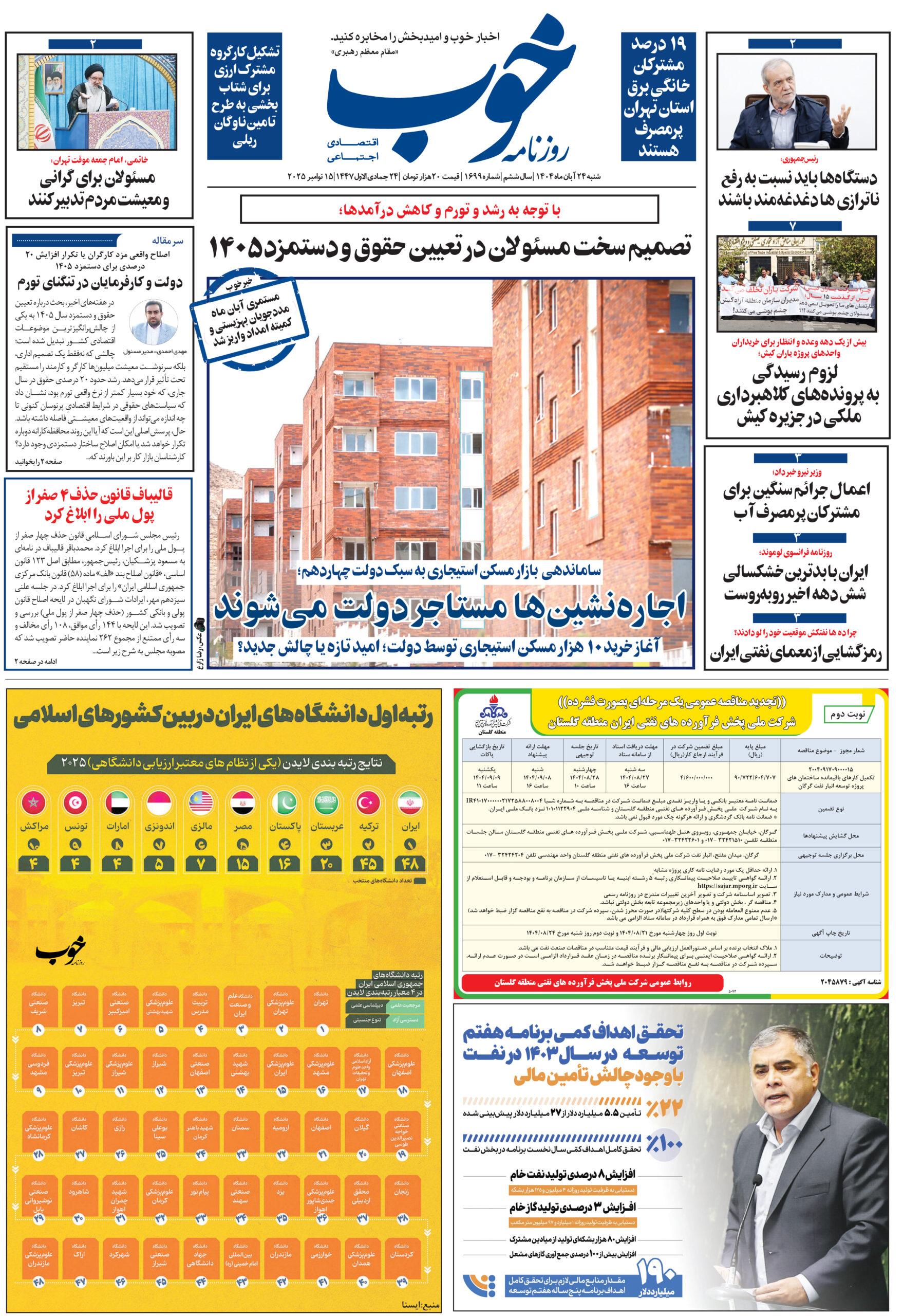 روزنامه «خوب» شنبه 24 آبانماه ۱۴۰۴