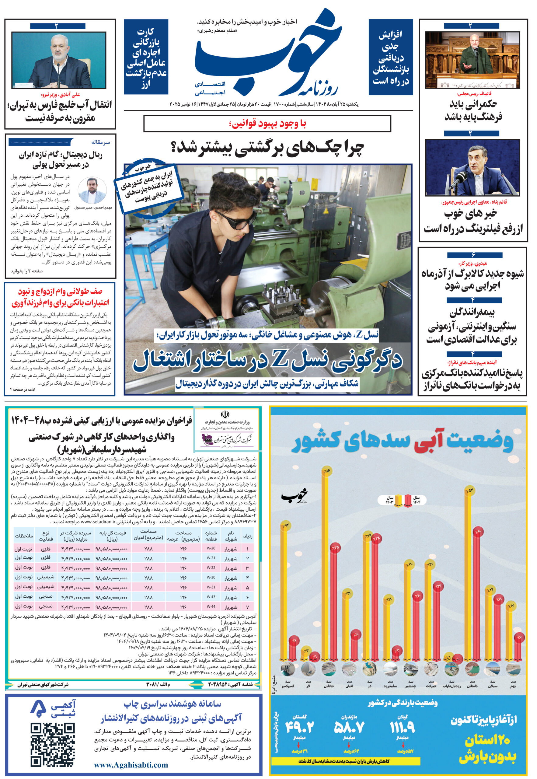روزنامه «خوب» یکشنبه 25 آبانماه ۱۴۰۴