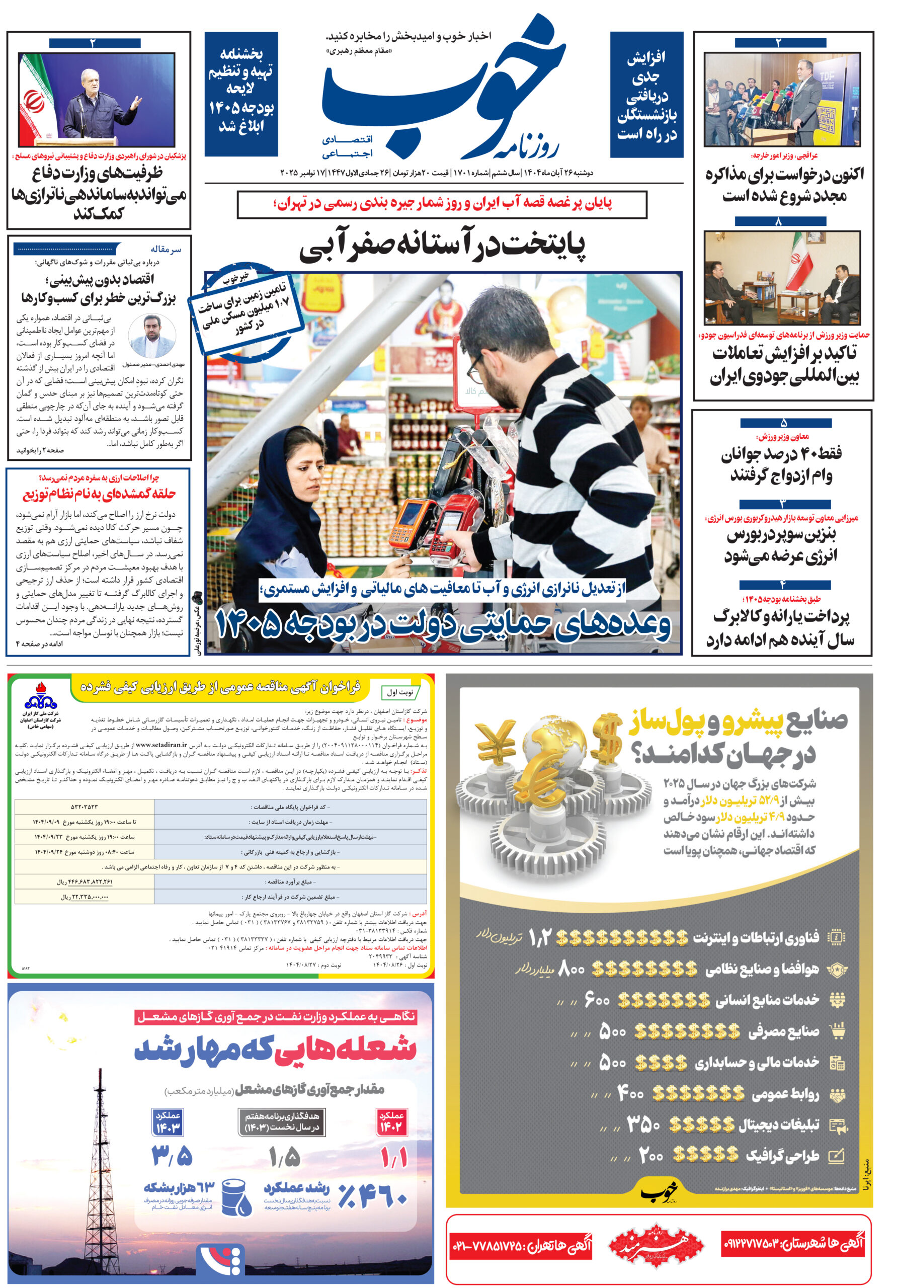 روزنامه «خوب» دوشنبه 26 آبانماه 1404
