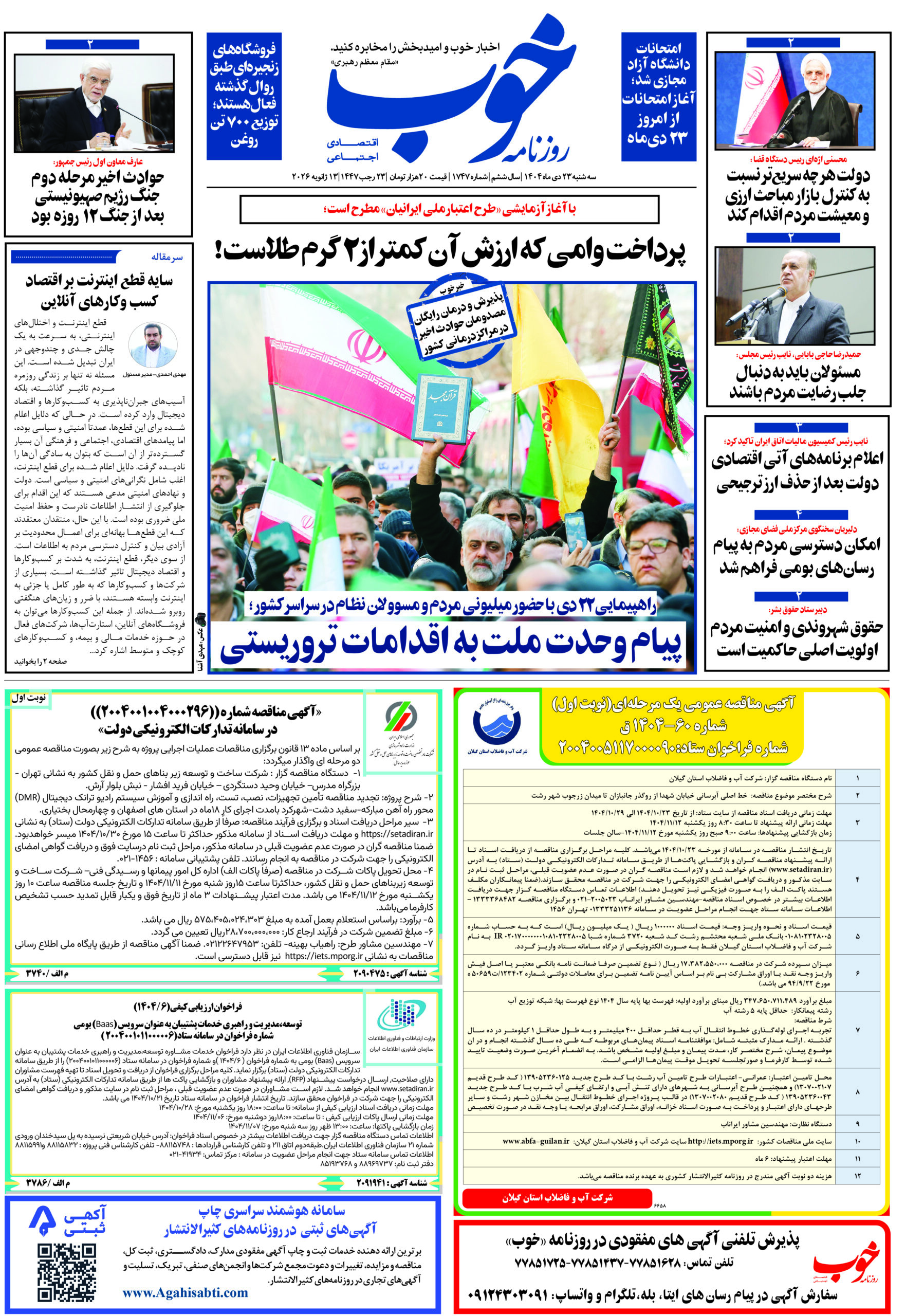 روزنامه «خوب» سهشنبه 23 دیماه ۱۴۰۴