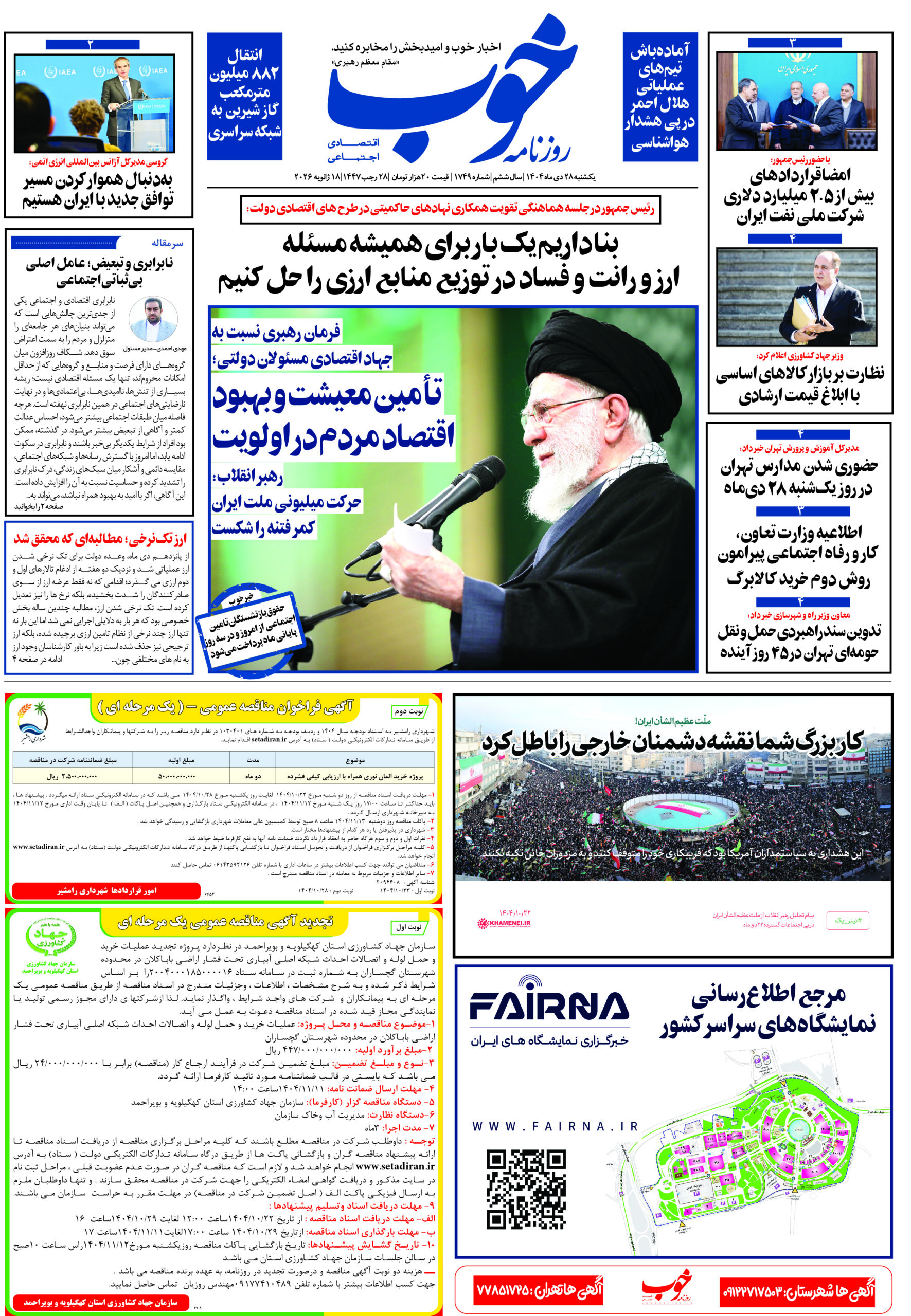 روزنامه «خوب» یکشنبه 28 دیماه ۱۴۰۴