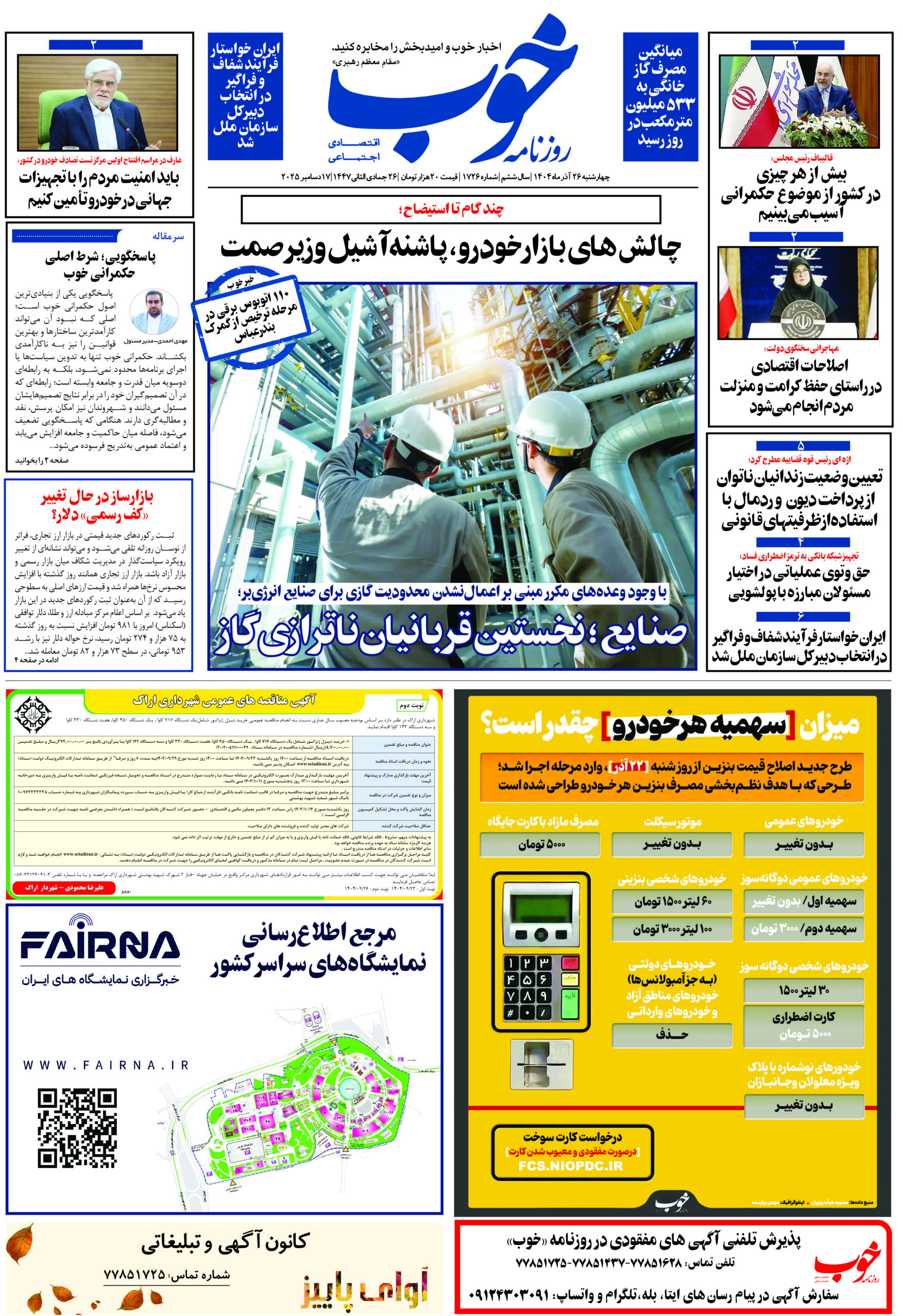 روزنامه «خوب» چهارشنبه 26 آذرماه ۱۴۰۴