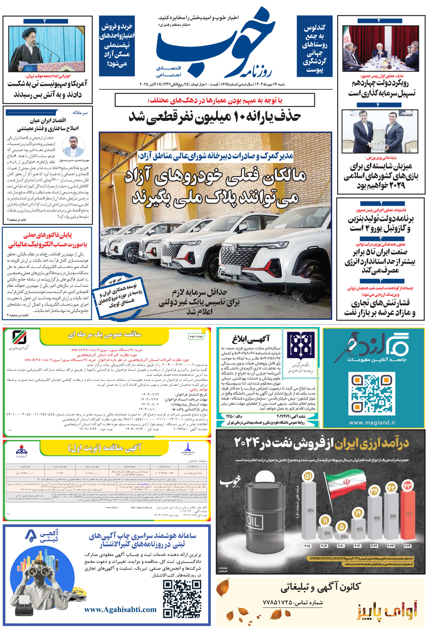 روزنامه «خوب» شنبه 23 مهرماه ۱۴۰۴