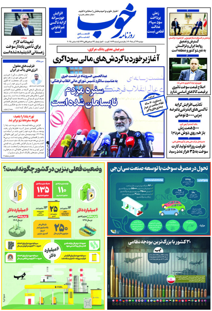 روزنامه «خوب» دوشنبه 24 آذرماه ۱۴۰۴