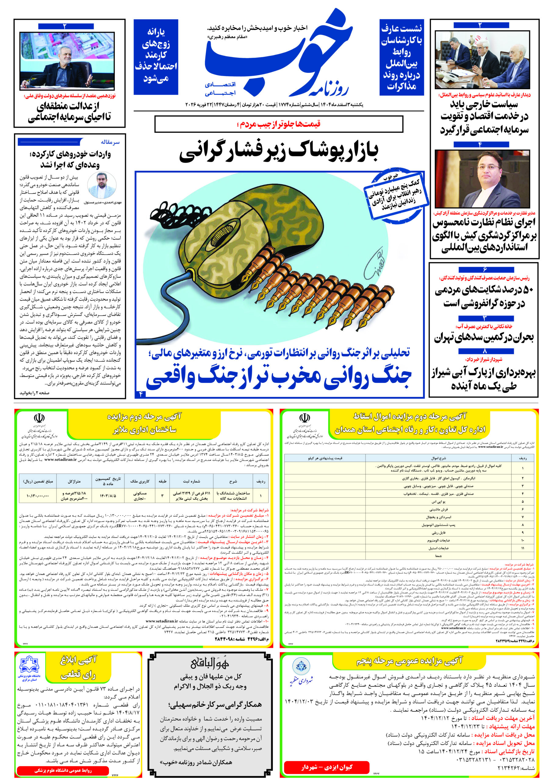 روزنامه «خوب» یکشنبه 26 بهمنماه ۱۴۰۴